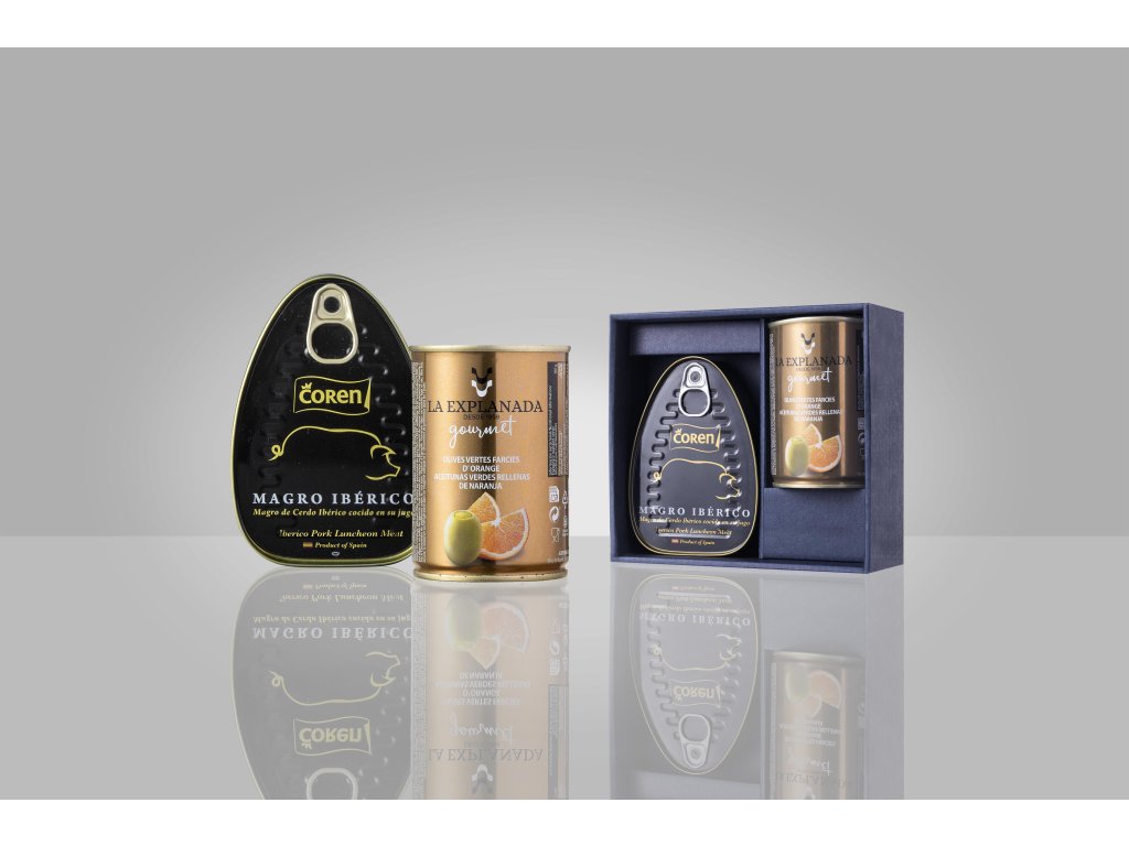 - olivy La Explanada - zelené plněné pomerančovou pastou - plech 280g