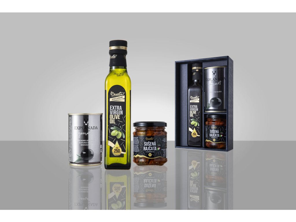 sada-olej B 0,25l+olivy La Explanda 280g+suš.rajčata 195g