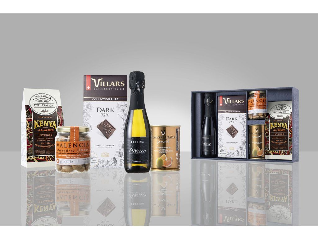 sada-prosecco Bellino 0,2+čoko Villars+olivy E280g+mandle 125g+káva-H
